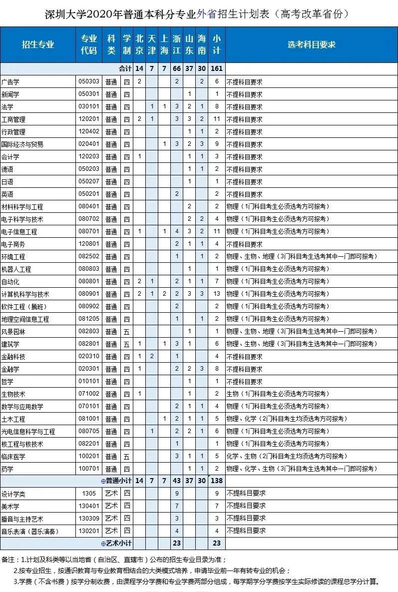 深圳大學(xué)2020年面向全國(guó)29個(gè)?。ㄗ灾螀^(qū)、直轄市)招生,招生總規(guī)模保持不變,總計(jì)劃為6750人。增加天津這1個(gè)招生省份;增加廣東省外招生計(jì)劃;增加金融科技、機(jī)器人工程、學(xué)前教育(師范)3個(gè)招生專(zhuān)業(yè);增加軟件工程(騰班)、心理學(xué)(師范)2個(gè)專(zhuān)業(yè)方向。