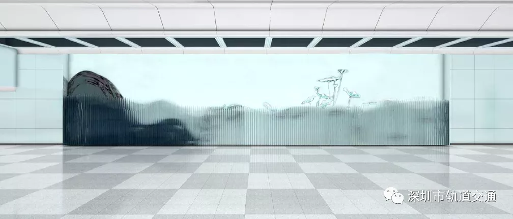 該站的文化藝術(shù)墻采用鋼化玻璃和不銹鋼噴漆,通過材質(zhì)的特性,呈現(xiàn)出自然變化的形態(tài),不同環(huán)境下不同的形態(tài)美。