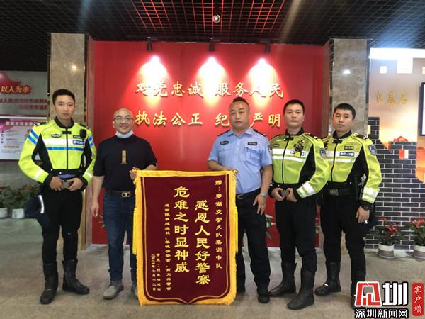 深圳新聞網(wǎng)訊(見圳客戶端、深圳新聞網(wǎng) 記者 郭含笑 通訊員 李曉萍)10月14日,群眾將一面題有“危難之時(shí)顯神威,感恩人民好警察”的錦旗送到羅湖交警大隊(duì),感謝羅湖機(jī)訓(xùn)中隊(duì)民警及鐵騎隊(duì)員在劉先生遇到困難時(shí)伸出援助之手。