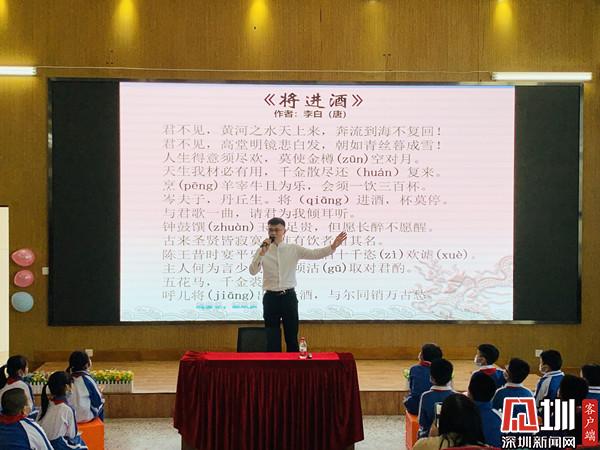 深圳新聞網訊(深圳新聞網記者 彭桂紅 通訊員 梁文雅)為進一步弘揚中華優(yōu)秀傳統(tǒng)文化,近日,深圳市錦田小學特邀青年文化學者、深圳市百姓學習之星、深圳市公益閱讀推廣人、深圳市首屆家園文化文學會會長晉玉東為廣大師生開展了一場別開生面的“中國古典詩詞朗誦藝術鑒賞——兼談如何朗誦好一首詩”公益文化講座。羅湖區(qū)錦田小學德弘校區(qū)副校長劉向陽、羅湖區(qū)錦田小學德弘校區(qū)主任張俊暉、羅湖區(qū)未來學校主任謝淑紅、德弘二年級家委代表以及語文科組老師,一同參加?;顒佑砂嘀魅瘟何难藕蛯W生劉沛東、張家琪共同主持,近200名學生參加了講座活動。整場講座師生熱情高漲,主講嘉賓深入淺出、娓娓道來,參與學生思維活躍、表現積極,帶動校園形成了學習詩詞文化的良好氛圍。