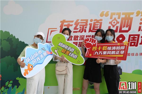 “我是在‘i羅湖’公眾號(hào)上看到消息,說(shuō)是周日梧桐綠道會(huì)舉辦攝影活動(dòng),于是帶著家人來(lái)游玩拍照”。羅湖市民周先生說(shuō)。這里有深圳和綠道元素的標(biāo)語(yǔ)、頭箍、合影異形牌等道具,拍照打卡很有紀(jì)念意義,而且還有專業(yè)的攝影師和智能照片打印機(jī)。“我們一家人很久沒有合影了”拿著剛打印出來(lái)的照片,周先生看著家人笑得很開心。