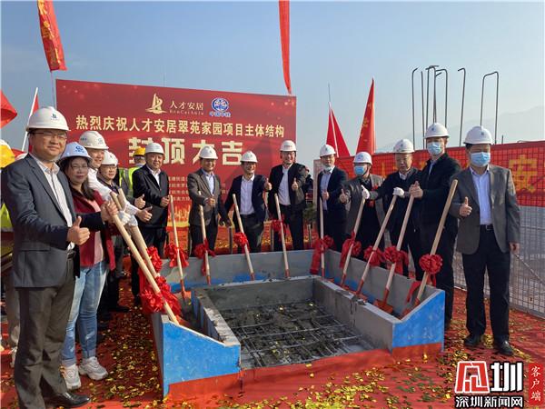 見圳客戶端·深圳新聞網(wǎng)1月22日訊(記者 李慧)“今天感到非常開心,四年前我們就期待這一天,這一天終于到來了。” 翠苑家園回遷業(yè)主胡先生如是說道。1月22日上午,由深圳市羅湖區(qū)蓮塘街道辦為實施主體、人才安居集團旗下羅湖人才安居公司代建的首個城市更新項目翠苑家園項目完成結(jié)構(gòu)封頂。當(dāng)天,羅湖區(qū)住房和建設(shè)局、區(qū)審計局、區(qū)城市更新和土地整備局、人才安居集團以及回遷業(yè)主等代表共同見證并完成最后一方混凝土澆筑。