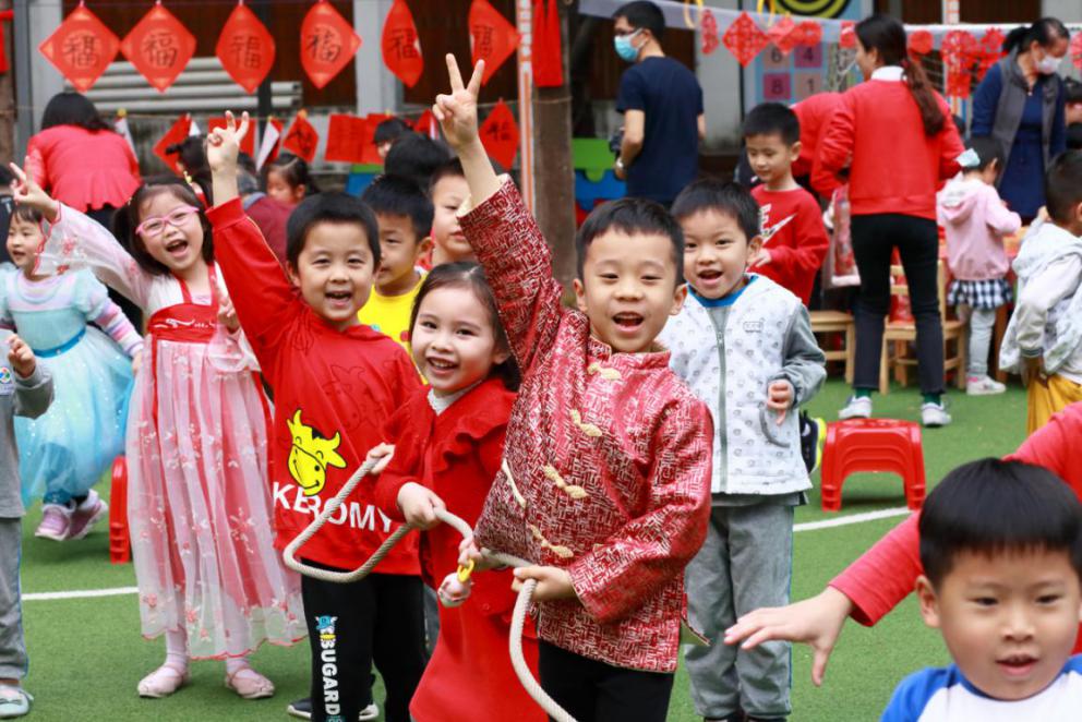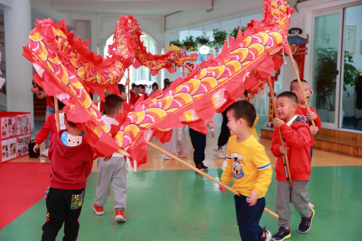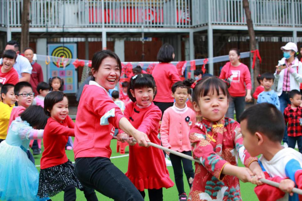 “加油!加油!”家長(zhǎng)與孩子一起參加的拔河比賽讓全場(chǎng)氣氛沸騰,套圈、貼鼻子等活動(dòng),更是讓大人們體驗(yàn)了一把兒時(shí)的歡樂(lè)。孩子們身系紅紅的綢帶、揮舞著漂亮的手絹,伴隨鑼鼓、嗩吶、镲奏出的動(dòng)感曲調(diào)扭著秧歌,更是將現(xiàn)場(chǎng)氛圍推向了高潮。