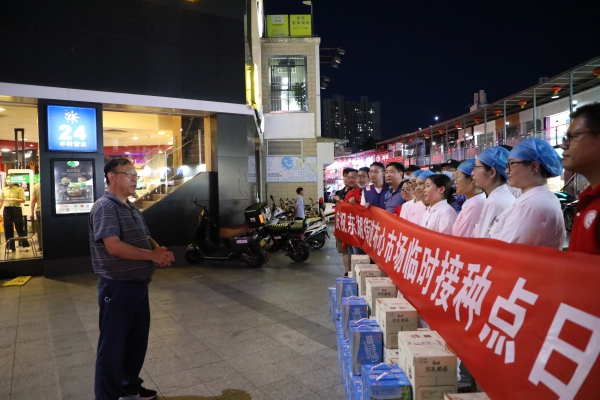 “大家辛苦了,感謝大家的辛勤付出!”在布心市場(chǎng)接種點(diǎn),程時(shí)菊首先向全體工作人員致以誠(chéng)摯的感謝,并叮囑他們要注意勞逸結(jié)合,做好自身防護(hù)。他強(qiáng)調(diào)全體工作人員面對(duì)艱苦的工作環(huán)境,沒有絲毫退縮,努力克服種種困難,始終以飽滿的熱情、昂揚(yáng)的斗志,堅(jiān)守崗位、加班加點(diǎn)、辛勤工作,每天圓滿完成了新冠疫苗接種清零任務(wù)。目前深圳疫情防控形勢(shì)嚴(yán)峻,希望大家繼續(xù)發(fā)揚(yáng)攻堅(jiān)克難、甘于奉獻(xiàn)的精神,全力加快新冠疫苗接種速度,為人民群眾的生命健康筑起堅(jiān)實(shí)屏障。