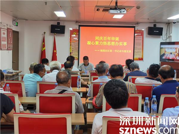 清水河街道四級(jí)調(diào)研員、梅園社區(qū)第一書(shū)記黃大滿為全體黨員講授黨史學(xué)習(xí)教育專題黨課,黨課和表彰會(huì)由梅園社區(qū)黨委副書(shū)記陳秋珊主持,社區(qū)兩委班子成員以及下轄25個(gè)黨支部書(shū)記參加。