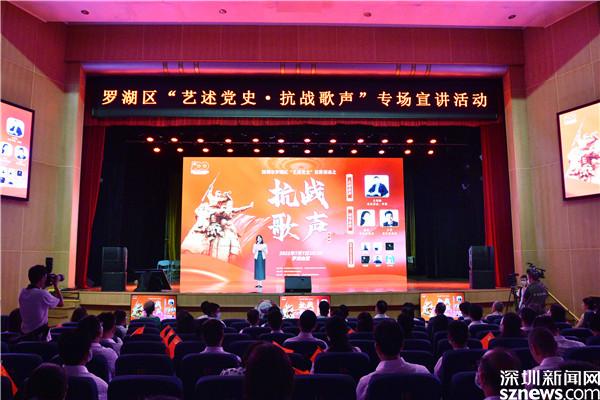 讀特客戶端·深圳新聞網(wǎng)2021年7月8日訊(記者 劉嘉敏 通訊員 李嫻 劉婉怡 陳彥嘉)7月7日,是“七七事變”紀(jì)念日,是一個(gè)銘刻歷史的日子,當(dāng)天下午,陣陣“抗戰(zhàn)歌聲”從羅湖會(huì)堂傳出,一場(chǎng)別開生面的黨史學(xué)習(xí)教育專場(chǎng)活動(dòng)在此舉行。市委黨史學(xué)習(xí)教育第二巡回指導(dǎo)組組長(zhǎng)林苗,區(qū)領(lǐng)導(dǎo)呂漫妮、姚文勝、吳歡、羅安娜出席,區(qū)宣傳文化系統(tǒng)黨員干部,區(qū)直各單位、各街道分管領(lǐng)導(dǎo),藝術(shù)家代表等參加活動(dòng)。