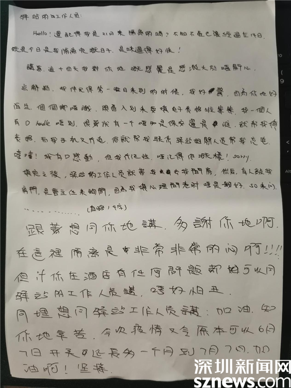 隔離病房隔絕病毒,卻不隔愛(ài)。在當(dāng)時(shí)的情況下,我們唯一想的就是把事情做好,全力以赴,確保所有隔離人員的安全。隔離人員中有襁褓中的嬰兒,有行動(dòng)不便的老人家,也有患有幽閉恐懼癥的年輕人,大家因疫情匯聚在了一起,發(fā)生了許多暖心的故事。