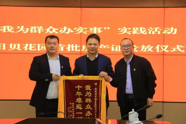 儀式當(dāng)天,5名村民代表從羅湖區(qū)領(lǐng)導(dǎo)的手中接過了房產(chǎn)證,田貝股份合作公司向有關(guān)單位贈送錦旗表示感謝。