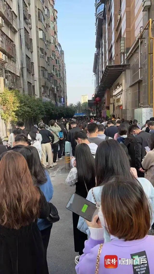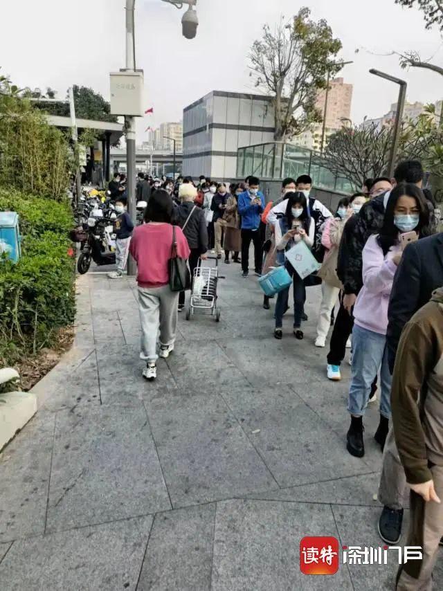 ▲南山區(qū)的深圳市禾正醫(yī)院,前往現(xiàn)場進行核酸檢測的市民排起了長龍。