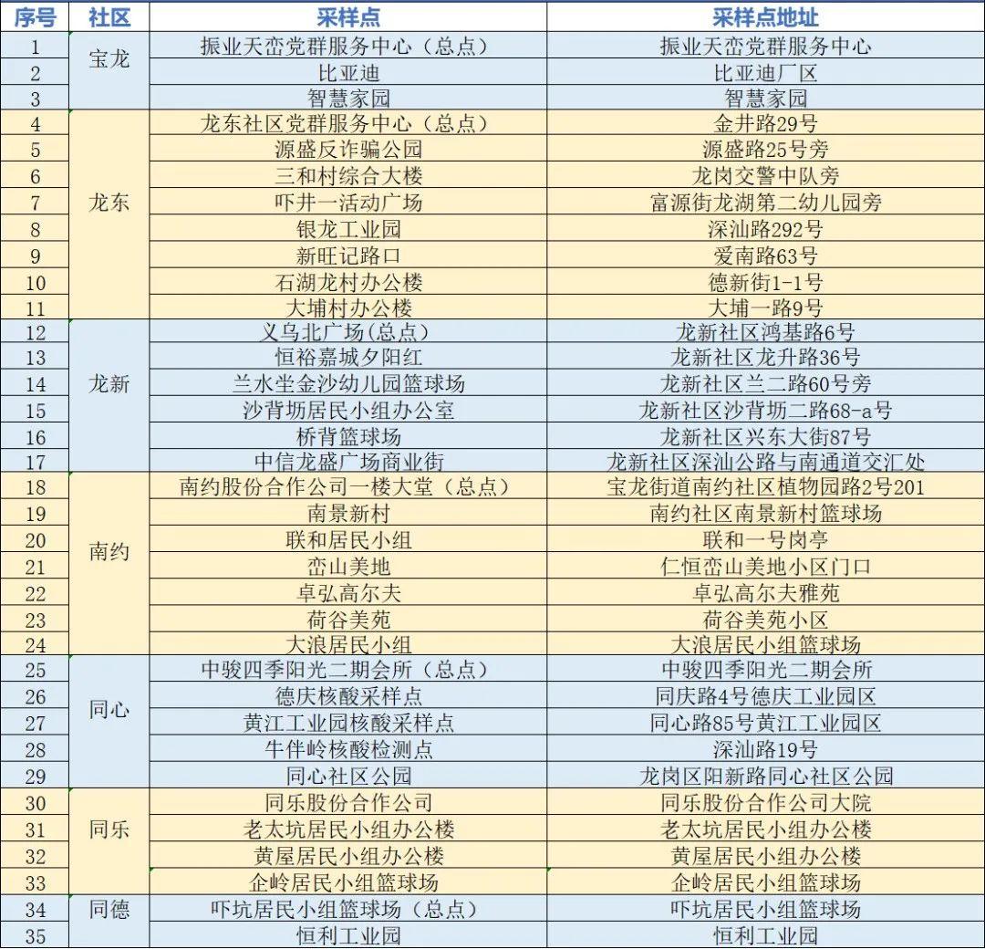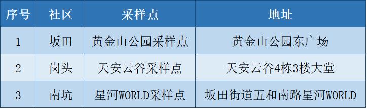 根據(jù)疫情防控需要,為最大程度保障人民群眾生命安全和身體健康,龍崗區(qū)各街道于1月10日開(kāi)展新一輪免費(fèi)核酸檢測(cè)以下點(diǎn)位統(tǒng)計(jì)截至1月10日。各點(diǎn)位動(dòng)態(tài)更新請(qǐng)以社區(qū)通知及現(xiàn)場(chǎng)實(shí)際情況為準(zhǔn)。