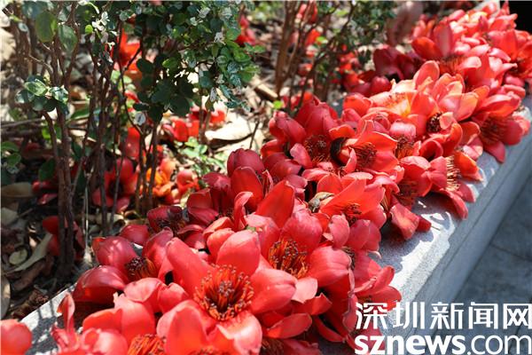 赤焰灼灼的木棉花開了,染紅了轄區(qū)半邊天際,與深圳藍(lán)相映成趣。一朵朵嫣紅的花兒垂?jié)M枝頭,沐浴著暖春的陽光綻放,也點(diǎn)綴著花下賞花的居民們。