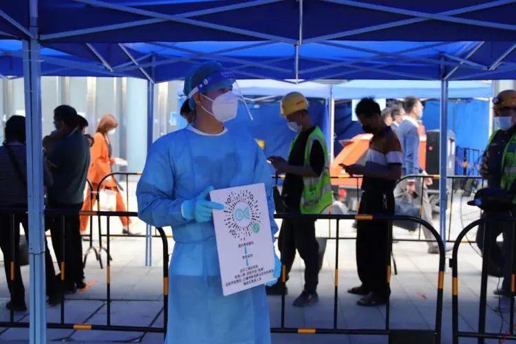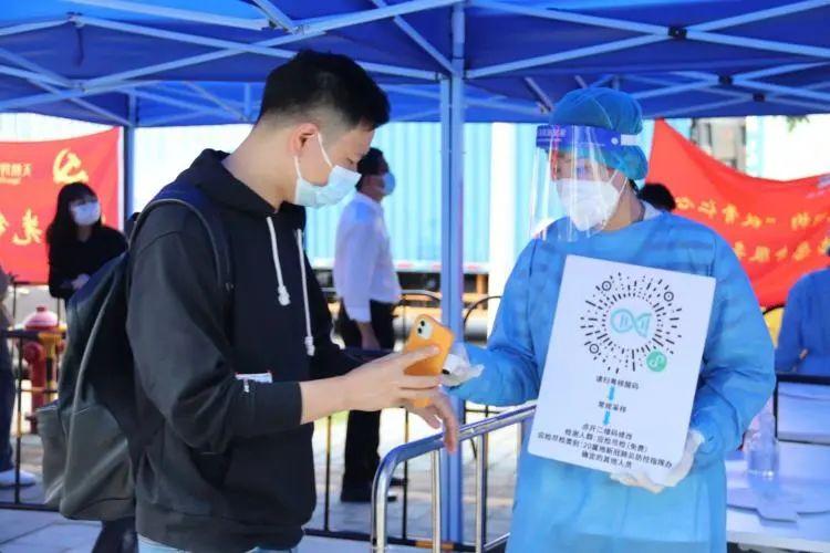 “之前一直在居住的小區(qū)做義工,在核酸檢測點(diǎn)做義工還是第一次,能為居民提供力所能及的服務(wù),我覺得非常有意義?!痹谄荷絼?chuàng)新廣場核酸檢測點(diǎn),根之然生物科技有限公司創(chuàng)始人、香港青年趙曼弛一絲不茍做好掃碼、測溫工作。