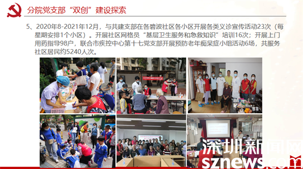 區(qū)中醫(yī)院康復(fù)分院黨支部以黨建引領(lǐng)“雙創(chuàng)”工作取得良好實效,與黃貝社區(qū)黨委的共建和交叉任職推動醫(yī)療資源和社區(qū)服務(wù)的資源共享,把“社區(qū)關(guān)愛服務(wù)”落到實處。通過黨組織聯(lián)動,增強了居民與醫(yī)護之間的溝通聯(lián)系,有力推動65歲老人體檢和疫苗接種,大大提升居民認可度、滿意度??祻?fù)分院黨支部與社區(qū)黨支部和黨員義工合作,為轄區(qū)內(nèi)70歲以上生活不便孤寡老人提供全方位的關(guān)愛服務(wù),開展上門訪視服務(wù)535人次;深入各小區(qū)開展各類義診宣傳、健康知識推廣活動等36場,惠及居民5000余人。