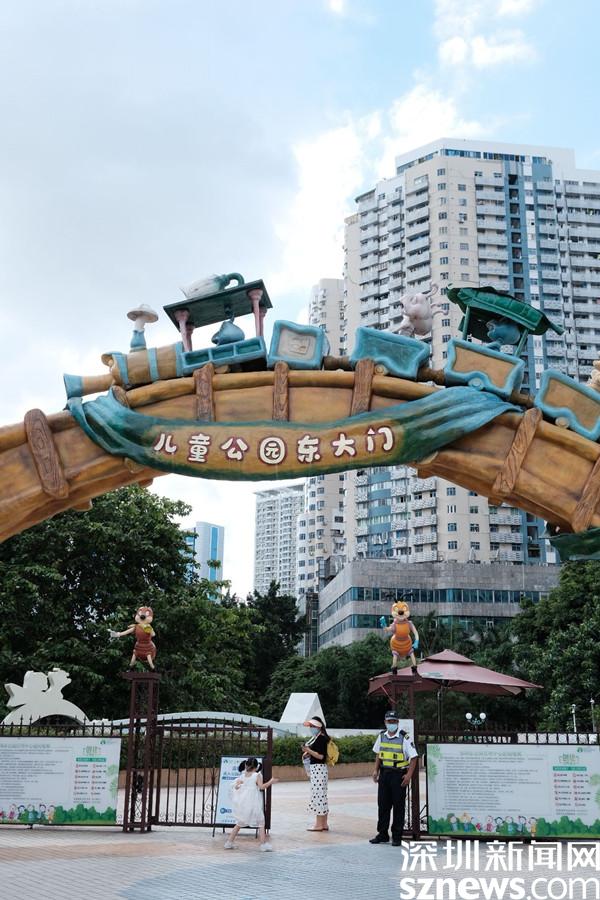 布滿童趣裝飾的東大門,進(jìn)入公園前需出示健康碼和核酸檢測(cè)證明,做好疫情防控措施,為前來(lái)玩耍的孩子們一份安全保障。