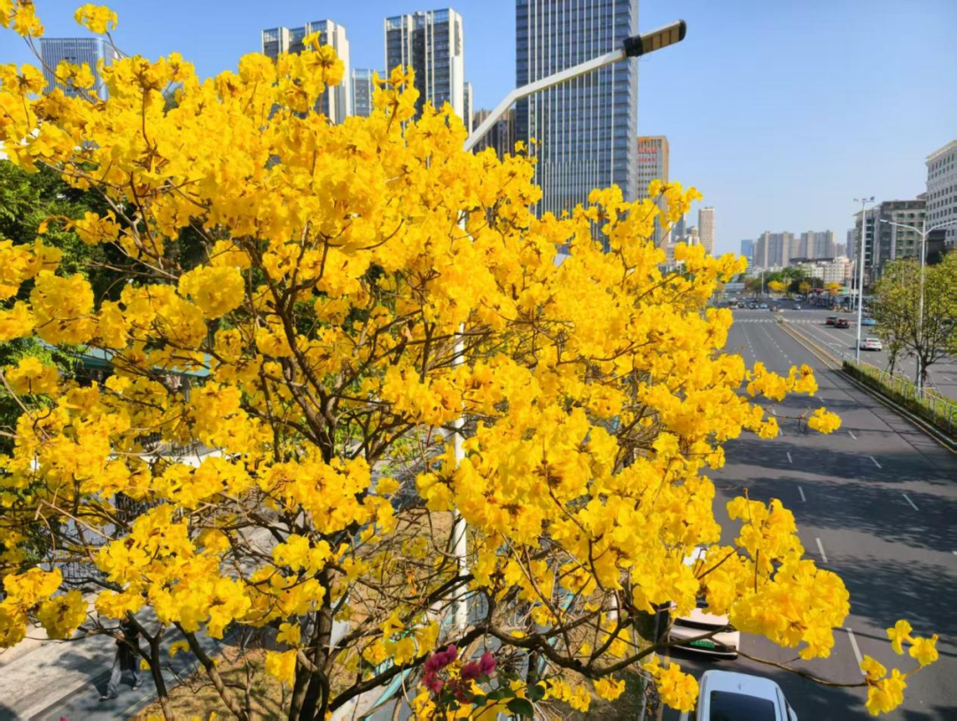 ● 近日,深圳街頭、各大公園的黃花風(fēng)鈴木迎來盛放期。