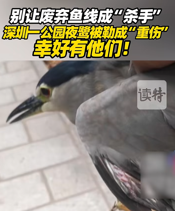 ● 深圳一公園夜鷺遭廢棄?mèng)~線纏繞致重傷,幸被及時(shí)送醫(yī)。提醒釣友文明垂釣,謹(jǐn)防拋棄的魚線成為鳥類殺手。