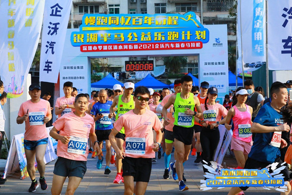 3月20日8:00,伴隨著激情的音樂,來自清水河街道的居民、企業(yè)職工、街道干部職工、跑步愛好者等202名參賽選手環(huán)銀湖水庫開跑。