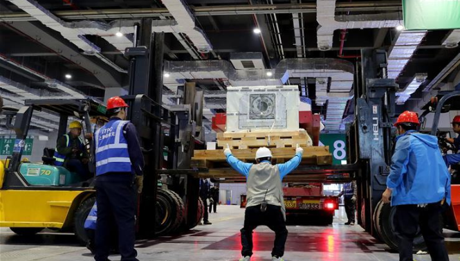 當(dāng)日,來自德國的首屆進(jìn)口博覽會最大展品——“金牛座”龍門銑床完成初步組裝,將運(yùn)往國家會展中心(上海)3號館進(jìn)行最后的安裝施工。