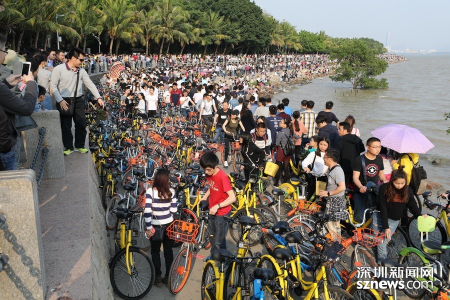 鵬城眼|深圳人假日勤動腳 共享單車“擠爆”深圳灣