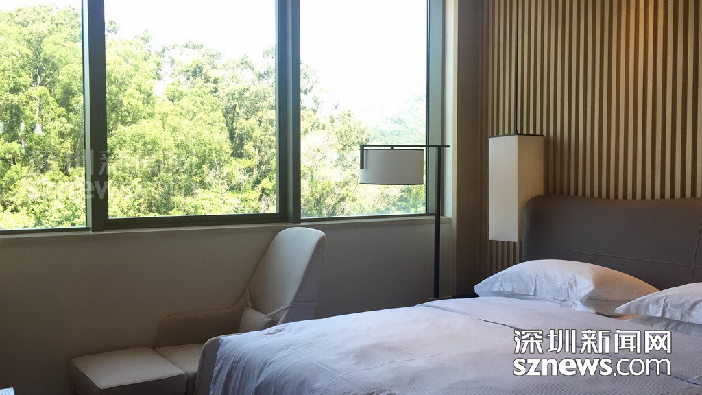 在酒店臨海客房陽臺可看到深圳灣大橋以及附近的游艇碼頭