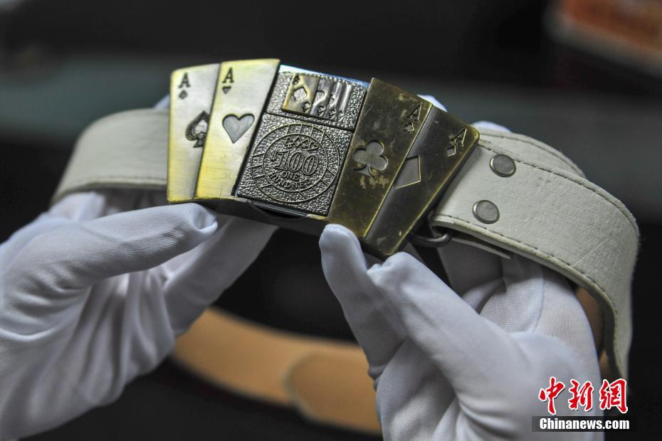 1月30日,遼寧沈陽,沈陽桃仙國際機場安檢中心工作人員展示腰帶打火機。當日在沈陽桃仙國際機場,展示了近期被查獲的手機打火機、口紅打火機、腰帶打火機等各類打火機10余款。2018年春運工作從2月1日即將開始,為確保機場春運工作安全、正常、有序,沈陽桃仙國際機場安檢中心將加大檢查力度,嚴格執(zhí)行“三品”查堵制度,重點查處夾帶易燃易爆危險品乘坐飛機。中新社記者于海洋 攝