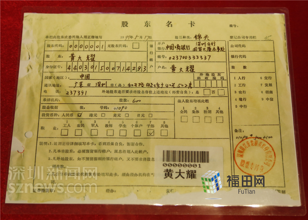 第一張股東名卡。