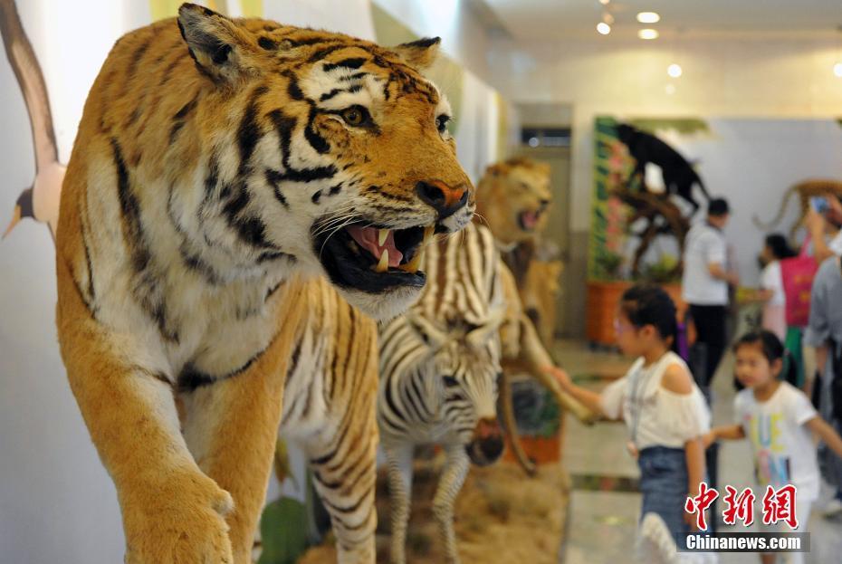 5月27日,各類飛禽走獸活靈活現(xiàn)地出現(xiàn)在民眾的眼前。正在福建博物院展出的第四屆中國(guó)動(dòng)物標(biāo)本大賽的257件惟妙惟肖的標(biāo)本作品集中對(duì)外開放,讓民眾如進(jìn)入“動(dòng)物世界”。本次大賽匯集了全國(guó)標(biāo)本制作企業(yè)、博物館、大專院校、研究所等60多家單位參加,標(biāo)本涵蓋哺乳類、鳥類、爬行類、兩棲類、魚類等動(dòng)物類群的皮張和骨骼標(biāo)本。主辦方希望通過標(biāo)本大賽,向公眾展現(xiàn)動(dòng)物世界的美麗,宣傳生物多樣性和生態(tài)文明,借鑒吸收國(guó)際標(biāo)本制作先進(jìn)經(jīng)驗(yàn),提高中國(guó)野生動(dòng)植物標(biāo)本制作的整體水平。圖為參賽的老虎標(biāo)本。中新社記者 張斌 攝