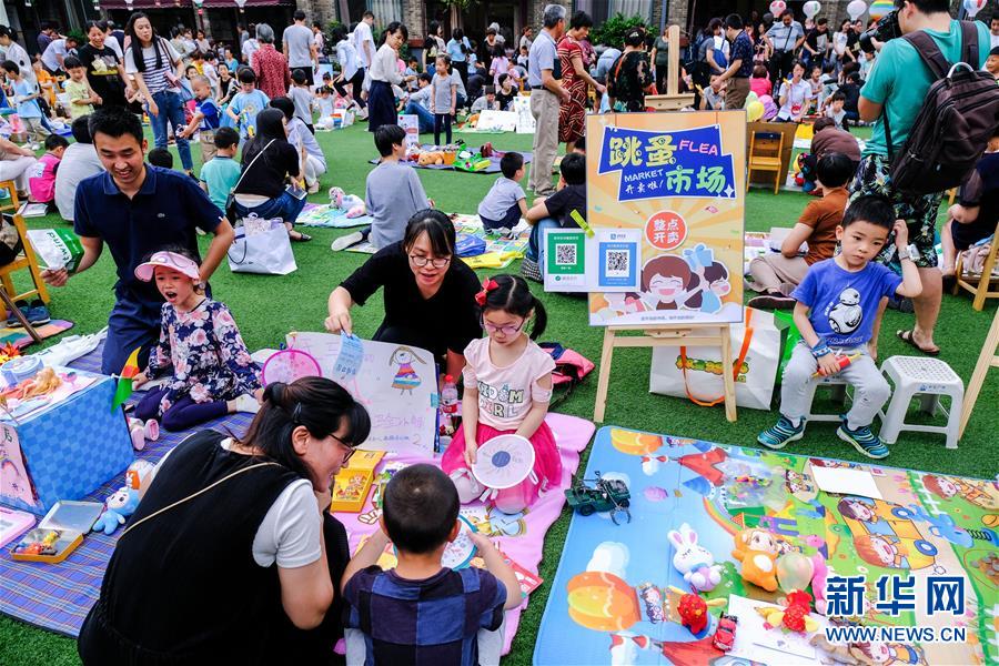 當日,浙江省杭州市浙江大學幼兒園西溪分園舉辦了一場綠色淘寶“跳蚤市場”活動。孩子們和家長把家中閑置的書籍、玩具拿到“跳蚤市場”上進行售賣和交換,發(fā)揮閑置玩具和書籍的效用,培養(yǎng)孩子們的環(huán)保意識和溝通能力。