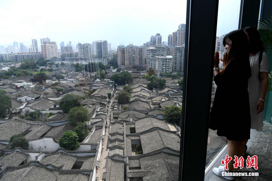 7月8日,從高處鳥瞰有“中國明清建筑博物館”之稱的福州三坊七巷,蔚為壯觀。位于福州中心城區(qū)的三坊七巷擁有38公頃的完整保護范圍,為國內(nèi)現(xiàn)存規(guī)模較大、保護較為完整的歷史文化街區(qū),是全國為數(shù)不多的古建筑遺存之一,有“中國城市里坊制度活化石”和“中國明清建筑博物館”的美稱。中新社記者王東明 攝