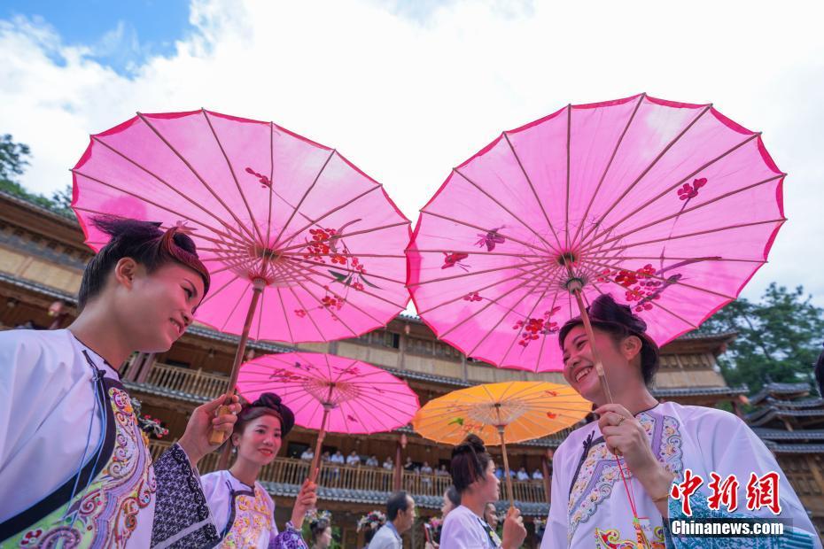 7月14日,貴州榕江,相思節(jié)上身著盛裝的侗族婦女。當(dāng)日,貴州省榕江縣樂里七十二寨舉行“六月六”相思節(jié),當(dāng)?shù)厣贁?shù)民族身著節(jié)日的盛裝,舉行盛裝巡游、吹蘆笙、踩歌堂等民俗活動歡度節(jié)日。中新社記者賀俊怡 攝