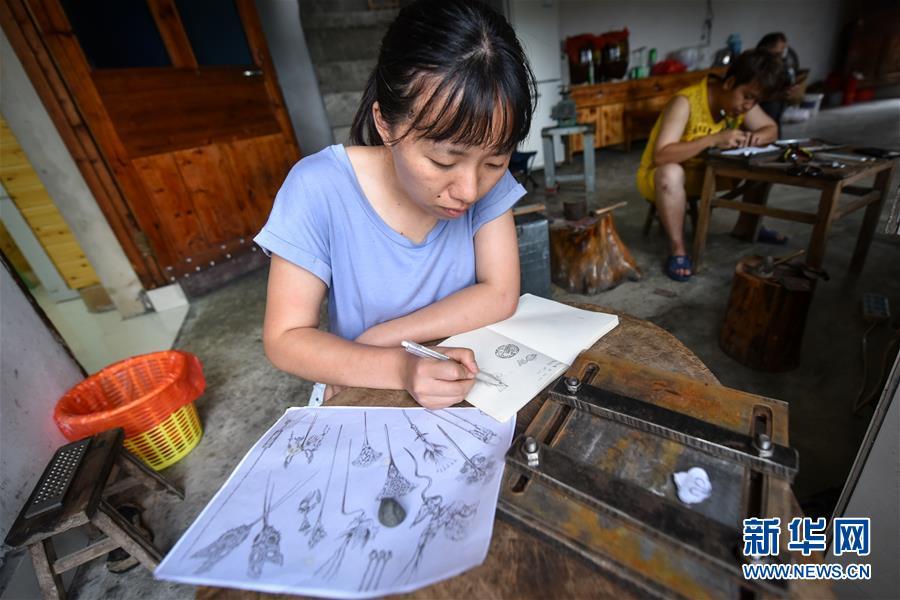 唐白梅是美國(guó)一所高校首飾設(shè)計(jì)專業(yè)的在讀研究生,專門利用暑假時(shí)間到雷山縣學(xué)習(xí)銀飾工藝?!耙郧疤糁鴵?dān)賣貨,賣不完回不了家;現(xiàn)在有了網(wǎng)上銷售,太方便了?!痹谫F州省黔東南苗族侗族自治州雷山縣西江鎮(zhèn)控拜村,50歲的銀匠龍懂陽(yáng)拿著手機(jī)查看全國(guó)各地發(fā)來(lái)的銀飾訂單,七月份的銷售額輕松超過了一萬(wàn)元。雷山縣的銀匠主要集中在控拜、麻料、烏高三個(gè)村,銀飾加工已經(jīng)有600多年歷史。作為銀匠家族的第九代傳人,龍懂陽(yáng)從14歲開始便挑著銀飾走村串鄉(xiāng),上門推銷。但山鄉(xiāng)偏僻路途遙遠(yuǎn),客源又有限,這種方式僅能勉強(qiáng)維持收支。為了賺錢,龍懂陽(yáng)放棄了傳統(tǒng)手藝,到溫州打工賣皮鞋。隨著家鄉(xiāng)的道路修通,苗寨的游客越來(lái)越多,銀飾品打開了新銷路。2014年,龍懂陽(yáng)建起了銀匠鋪,重拾本行。在當(dāng)?shù)胤鲐毟刹亢涂腿说膯l(fā)下,他建起了銀飾展示廳,開了網(wǎng)店,線上訂單源源不斷。