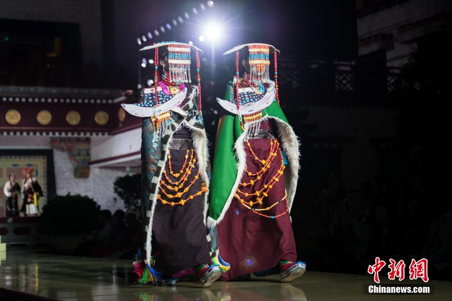 8月12日晚,由西藏職業(yè)技術學院與北京服裝學院共同打造的“凈美雪頓·美好生活”西藏民族服裝與服飾展演活動在拉薩舉行?,F(xiàn)場通過傳統(tǒng)篇、現(xiàn)代篇與未來篇三個篇章,展演了藏族傳統(tǒng)服裝26套,設計創(chuàng)新服裝58套,共計84套服裝。圖為模特展示藏族傳統(tǒng)服飾。中新社記者何蓬磊 攝