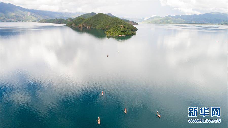 這是無人機(jī)拍攝的瀘沽湖美景,瀘沽湖至今保持I類水質(zhì)(7月30日攝)。 新華社記者 楊牧源 攝