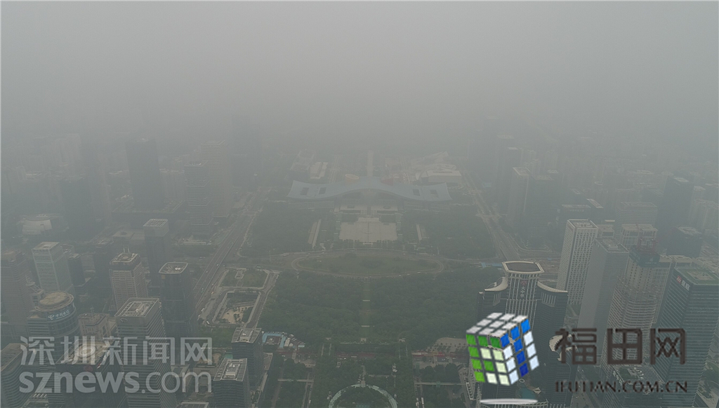 整個(gè)福田中心區(qū)都籠罩在灰霾之中。