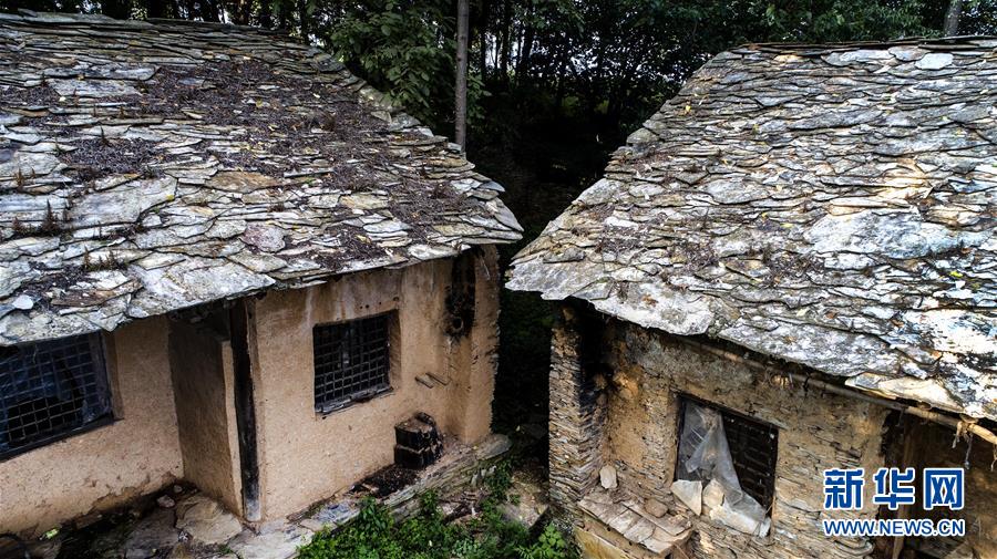 掩映在大山之中的石板房古村落,人去房空(8月7日無人機拍攝)。 新華社記者陶明攝