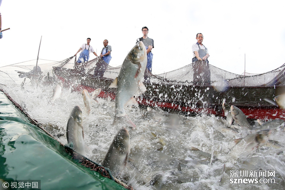 ???? 2018年6月26日,江蘇省常州市嘉澤鎮(zhèn)捕撈村的漁民組織夏季捕撈,一網(wǎng)魚(yú)達(dá)五萬(wàn)余斤,以鰱魚(yú)為主,供應(yīng)市場(chǎng)需求。夏捕的魚(yú)價(jià)較平時(shí)有所上漲,漁民粗略估計(jì)可增收上萬(wàn)余元。