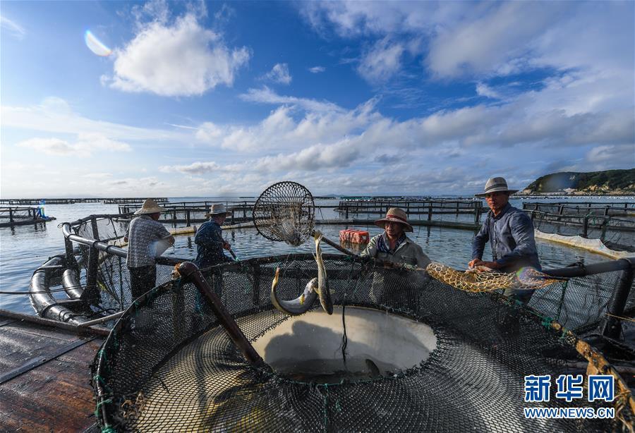 8月18日,南麂島海域內(nèi)的“海上牧場(chǎng)”養(yǎng)殖區(qū)內(nèi),漁民正捕撈大黃魚,處于仿生養(yǎng)殖環(huán)境的大黃魚需要生長(zhǎng)2至3年。進(jìn)入8月,浙江省溫州市平陽(yáng)縣南麂鎮(zhèn)海域上大片的大黃魚、貽貝等特色海產(chǎn)品養(yǎng)殖區(qū)域迎來(lái)豐收季節(jié),養(yǎng)殖戶們駕駛漁船在養(yǎng)殖區(qū)海域進(jìn)行打撈收獲,在碧海藍(lán)天下構(gòu)成了一幅“海上牧場(chǎng)”的美麗豐收景象。近年來(lái),南麂鎮(zhèn)政府引導(dǎo)漁民養(yǎng)殖戶充分發(fā)揮“靠海吃海”的資源優(yōu)勢(shì),大力發(fā)展海洋養(yǎng)殖經(jīng)濟(jì)和海島旅游經(jīng)濟(jì),實(shí)現(xiàn)了南麂由“生態(tài)美”向“產(chǎn)業(yè)美”,“產(chǎn)業(yè)美”向“經(jīng)濟(jì)美”的轉(zhuǎn)變。同時(shí)該鎮(zhèn)堅(jiān)持以大黃魚、貽貝等為特色產(chǎn)業(yè)支撐,精準(zhǔn)發(fā)展高效海洋養(yǎng)殖業(yè),重點(diǎn)培養(yǎng)一批新型職業(yè)漁民,依靠專業(yè)技術(shù)支持,實(shí)現(xiàn)深海仿生養(yǎng)殖,讓好生態(tài)造就好品質(zhì),重點(diǎn)打造南麂養(yǎng)殖品牌,組建營(yíng)銷網(wǎng)絡(luò),拓展特色海產(chǎn)品市場(chǎng)。新華社記者 徐昱攝
