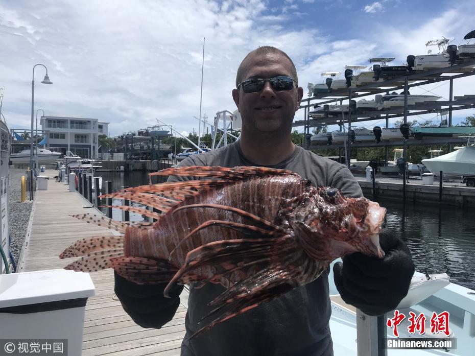 8月21日訊(具體拍攝時(shí)間不詳),近日,來(lái)自長(zhǎng)島的Timothy Blasko打破了記錄,他捕獲了大西洋最重的獅子魚(yú)。37歲的Timothy Blasko是一名技術(shù)精湛的捕魚(yú)者,當(dāng)天,他和朋友們?cè)诜鹆_里達(dá)群島伊斯拉莫拉達(dá)海岸捕魚(yú)時(shí),遇到了這條大魚(yú)。Timothy向朋友要來(lái)了魚(yú)叉,瞄準(zhǔn)大魚(yú)的下方位置叉去,正中目標(biāo)成功捕獲。當(dāng)他們把這條魚(yú)和當(dāng)天捕獲的其它魚(yú)排在一起時(shí),他們猜測(cè)這條魚(yú)可能會(huì)破紀(jì)錄。“它簡(jiǎn)直是獅子魚(yú)中的哥斯拉!” Timothy描述道,“這條巨大的獅子魚(yú)重達(dá)3.1磅,刷新了大西洋迄今最重獅子魚(yú)的國(guó)家紀(jì)錄?!眻D片來(lái)源:視覺(jué)中國(guó)
