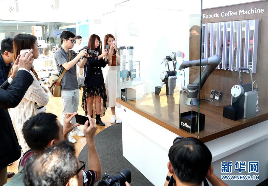 9月5日,無(wú)人零售商店內(nèi)的機(jī)器人在做咖啡。當(dāng)日,香港首家AlipayHK(支付寶香港版)無(wú)人零售商店在九龍區(qū)奧海城開業(yè)。商店占地約370平方米,售賣多款時(shí)尚精品、服飾等,還引入一臺(tái)智能機(jī)械臂,為顧客現(xiàn)場(chǎng)沖調(diào)香濃咖啡。新華社記者李鋼攝