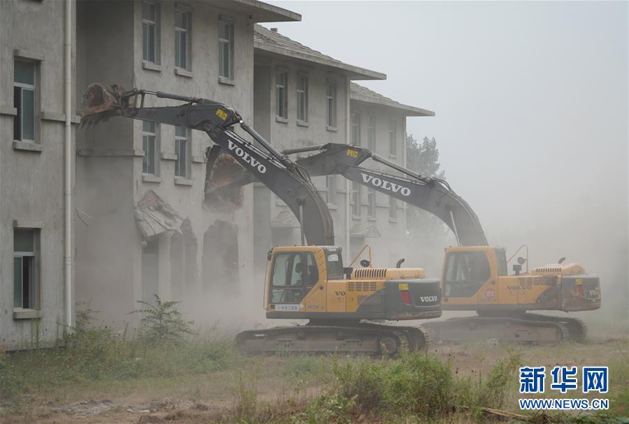 9月6日,大型機(jī)械對(duì)“群賢別業(yè)”內(nèi)的別墅進(jìn)行拆除。新華社記者 邵瑞 攝