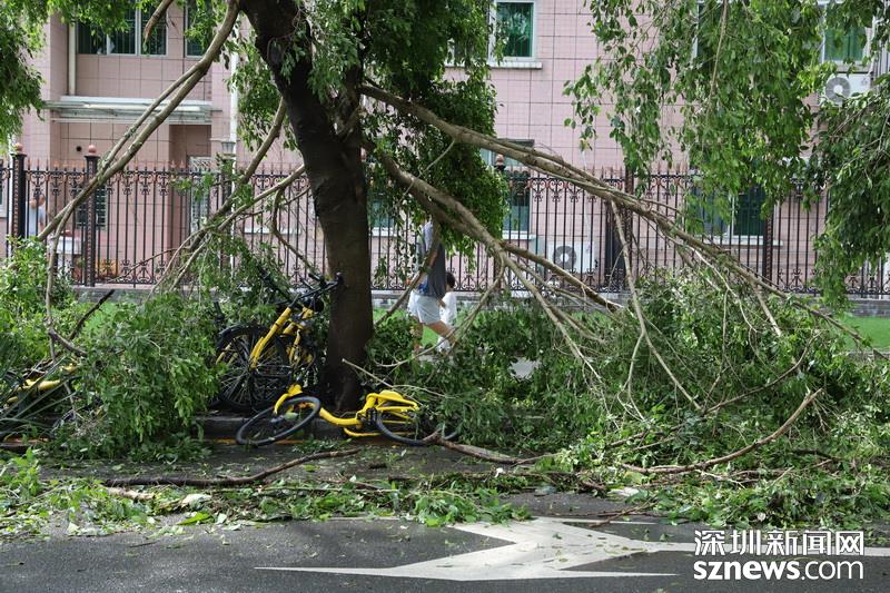 在蓮花北村靠近北環(huán)中學(xué)的小路,記者注意到拉起警戒線,有多株樹木經(jīng)不住大風(fēng)考驗(yàn),已投降就地倒下。