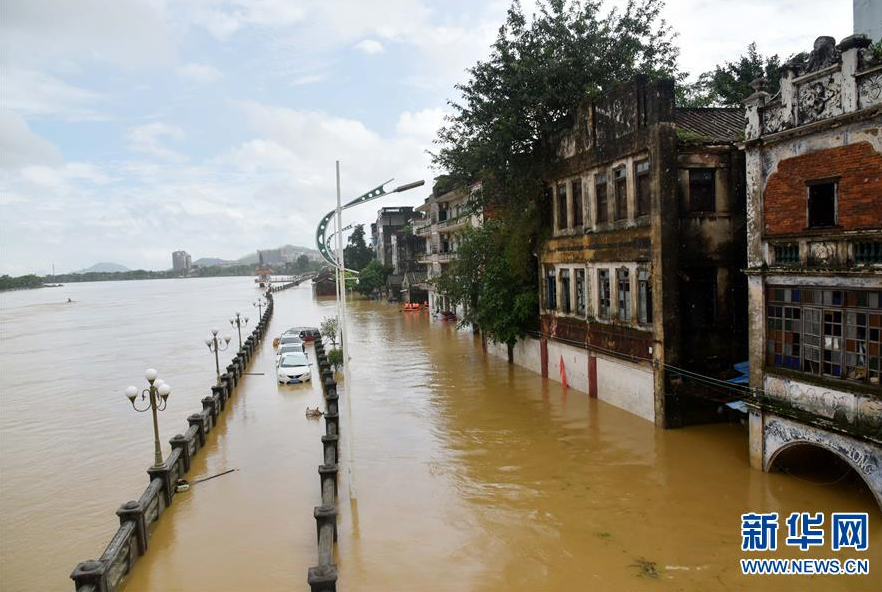 9月18日,陽春市漠陽江畔的街道被洪水淹沒。 新華社記者 周科 攝