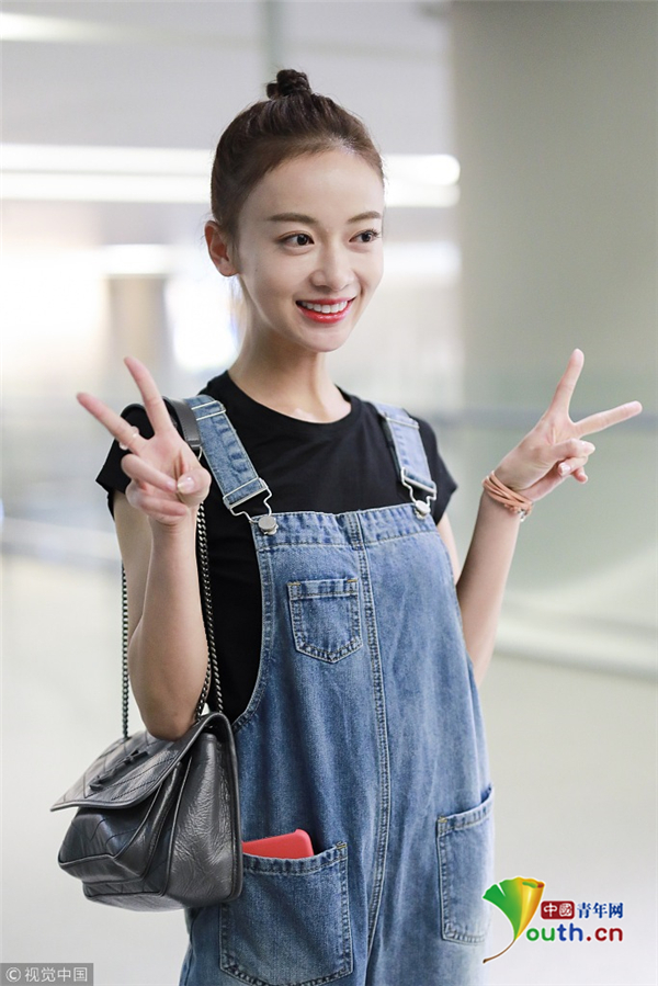 趙麗穎荷葉邊連衣裙亮相 甜美迷人