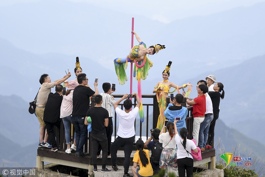 長(zhǎng)三角第一高峰上演高空鋼管舞 舞者演繹“嫦娥奔月”