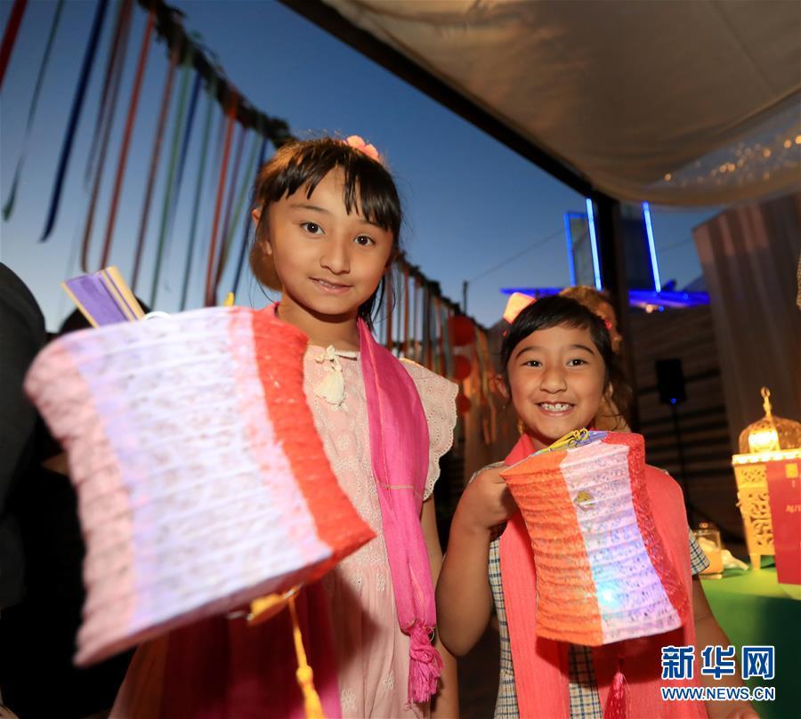 9月23日,在美國科斯塔梅薩南岸廣場,兩名兒童參加中秋游園會。 美國西部最大購物中心南岸廣場23日晚舉辦游園會,慶祝中國傳統(tǒng)節(jié)日中秋節(jié)。 新華社記者李穎攝