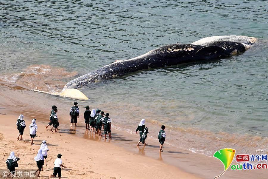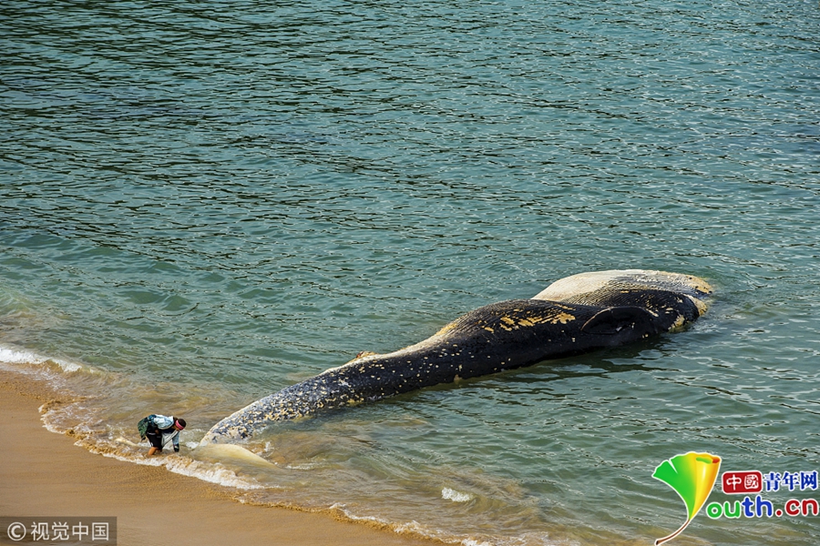 一頭稀有的大須鯨的尸體被沖上當(dāng)?shù)睾?/p>