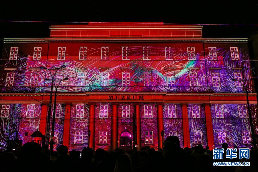 這是9月28日在波蘭羅茲市中心拍攝的2018“舞動”燈光節(jié)現(xiàn)場。2018“舞動”燈光節(jié)于9月28日至30日在波蘭中部交通樞紐城市——羅茲市舉行,各式各樣的光影表演在這座城市的各個角落同時上演,組成了一場如夢如幻的大型燈光秀。新華社記者陳序攝