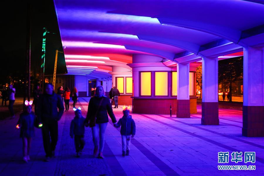 9月28日,游客在波蘭羅茲市中心舉辦的2018“舞動”燈光節(jié)上游玩。2018“舞動”燈光節(jié)于9月28日至30日在波蘭中部交通樞紐城市——羅茲市舉行,各式各樣的光影表演在這座城市的各個(gè)角落同時(shí)上演,組成了一場如夢如幻的大型燈光秀。新華社記者陳序攝