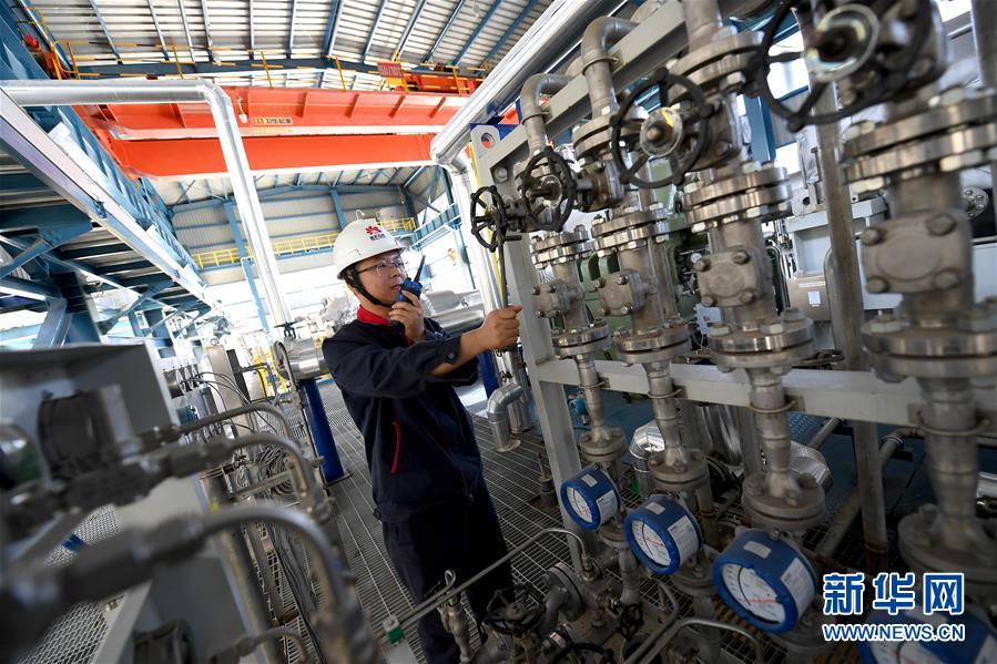 延安煤油氣資源綜合利用項目甲醇制烯烴中心的工作人員進行設(shè)備巡檢(9月28日攝)。新華社記者劉瀟攝