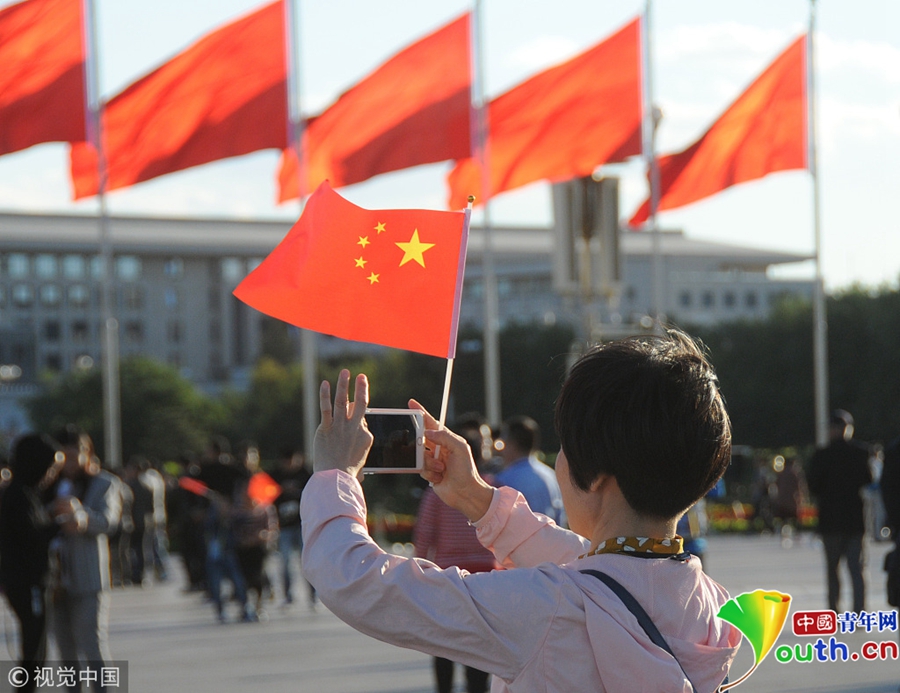 北京迎來高顏值好天氣 游客紛紛在天安門廣場拍照留影